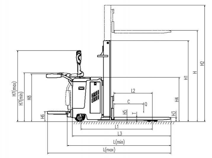 | Garde au sol min.(fourches) | H3 | mm | 85 | ||||